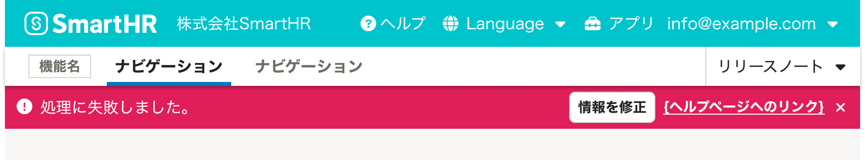 操作後に画面全体の切り替えが発生する場合など、ユーザーが直前に操作していたButtonの近くに表示することが難しい場合は、成功時にはsuccess状態、失敗時にはerror状態でNotificationBar[bold]を表示します。