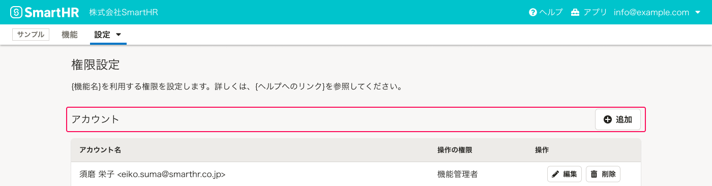 • 機能管理者:すべての操作の権限を持つ