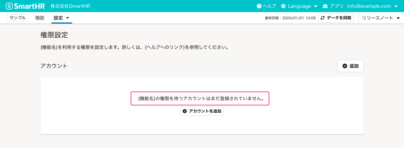 {機能名}を利用する権限を設定します。詳しくは、{ヘルプへのリンク}を参照してください。
